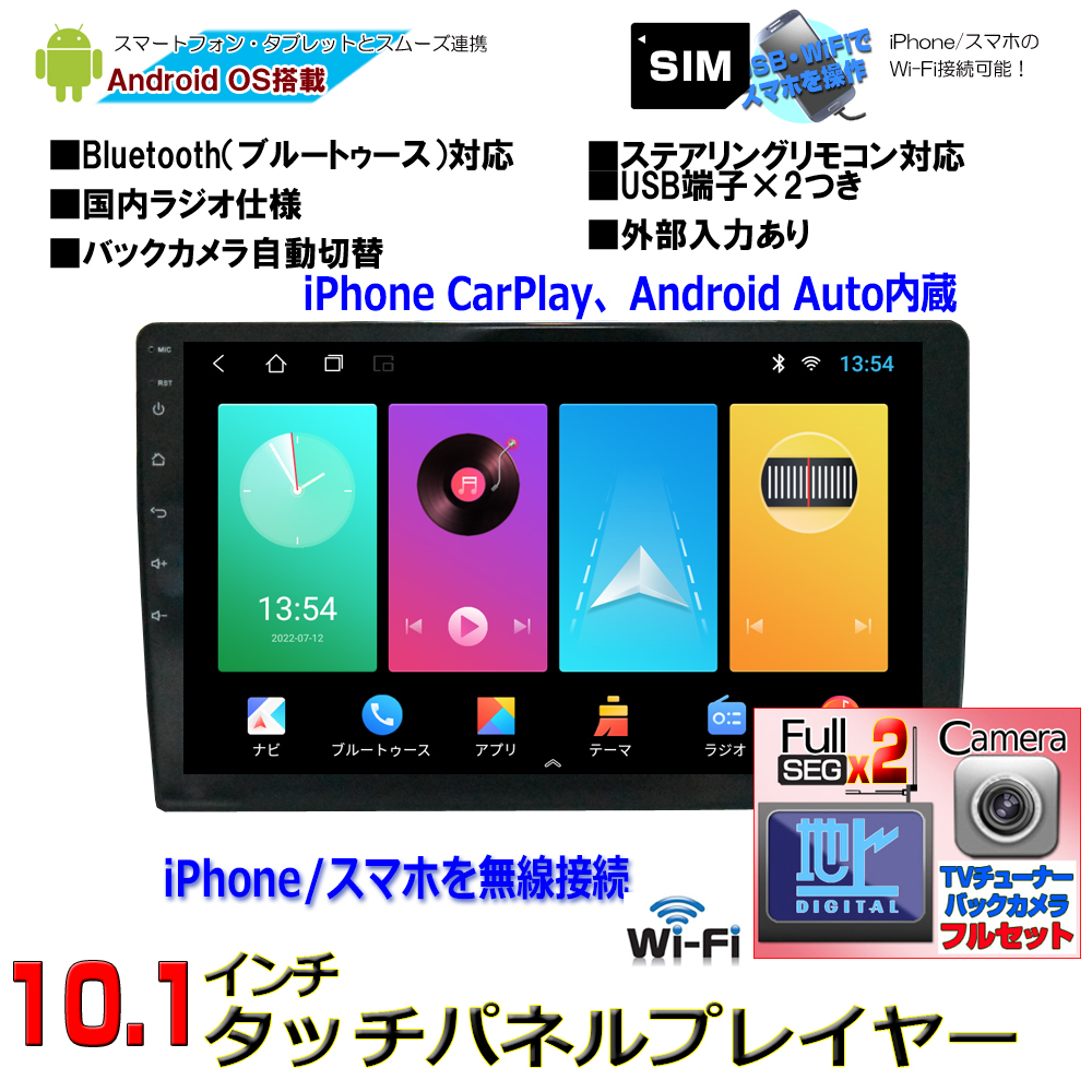 +地デジ2x2フルセグチューナーセット+170度バックカメラセット アンドロイド スマートフォン iPhone WiFi 無線接続【一年保証】