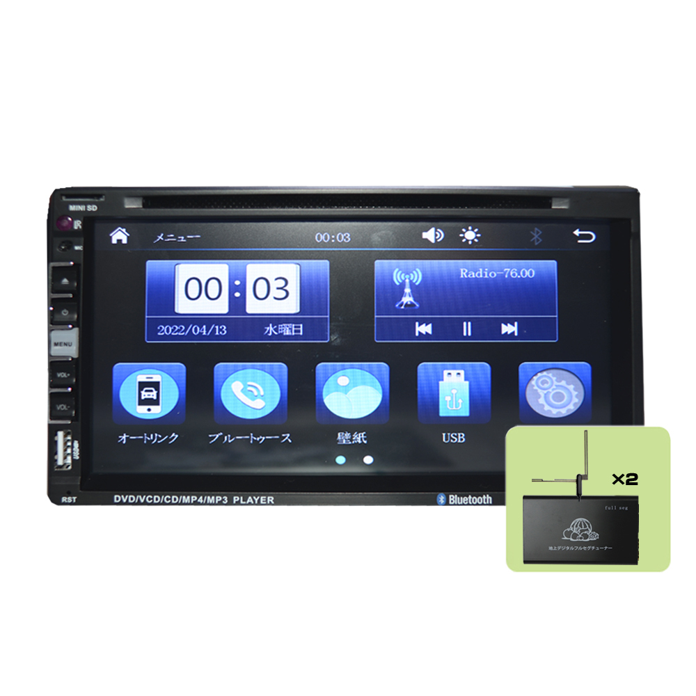 - Apple CarPlay Android Auto ミラーリングブルートゥース外部入力USB SD動画音楽車載DVDプレーヤー+地デジ2x2フルセグチューナーセット