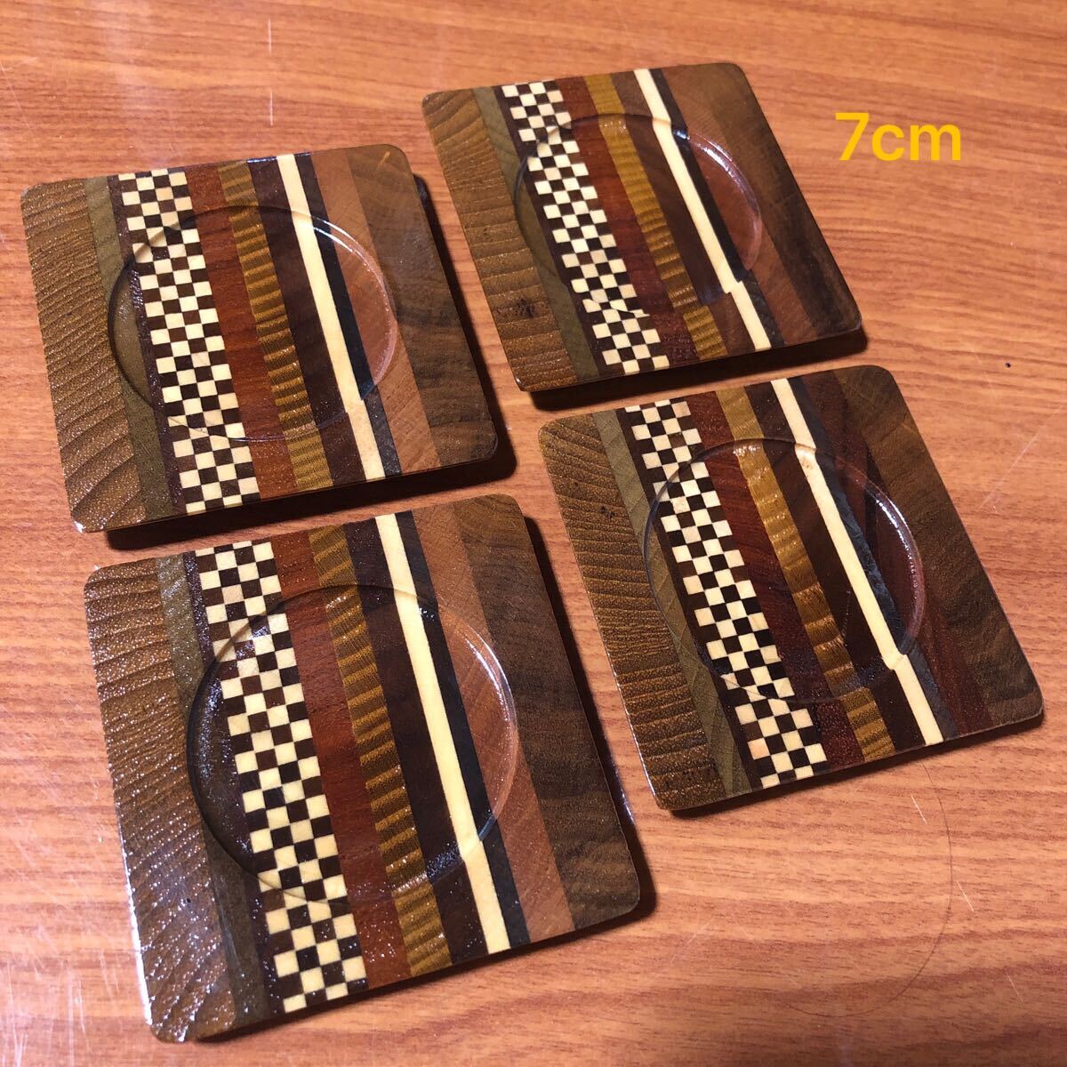 - 〈送料無料〉寄木細工 箱根細工 コースター 茶托 無垢 工芸品 正方形 天然木