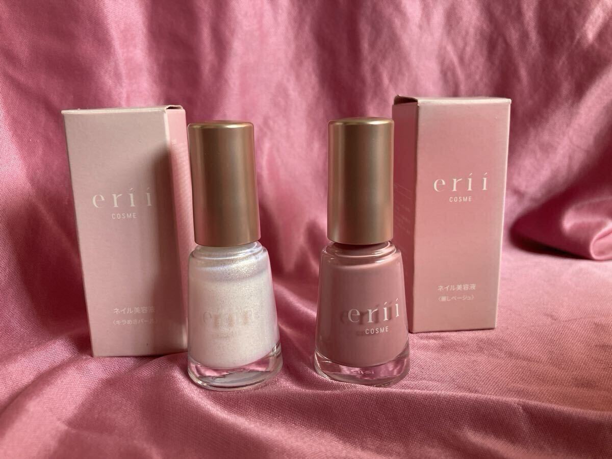 - erii エリィ マニキュア 新品 ネイル美容液UB 麗しベージュ / ネイル美容液K キラめきパール 各6ml 除光液不要 お湯で簡単オフ セット