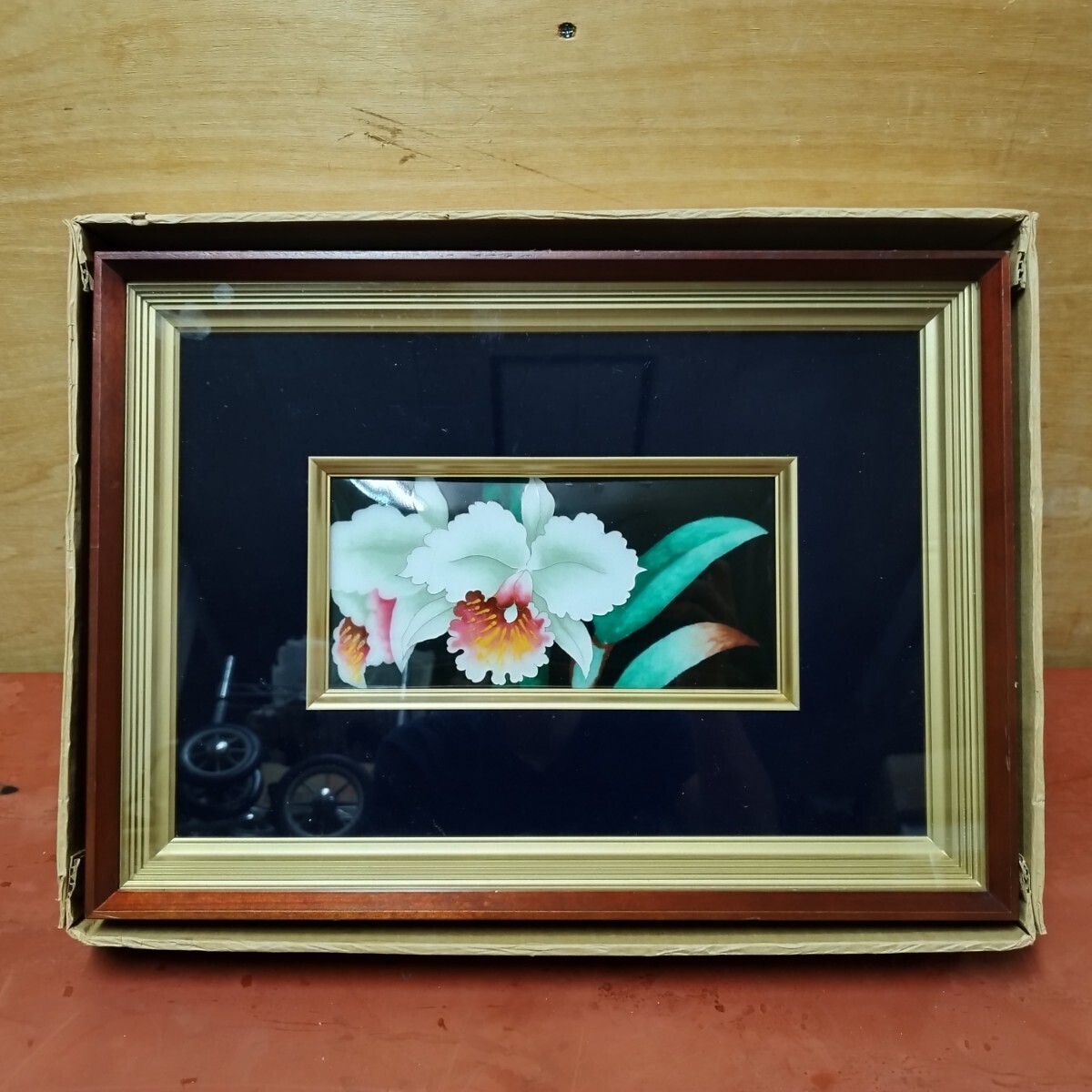 - 戸05d 「カトレア」 七宝焼 陶板画 額装 太田七宝 壁掛け インテリア 花 美術品 アート