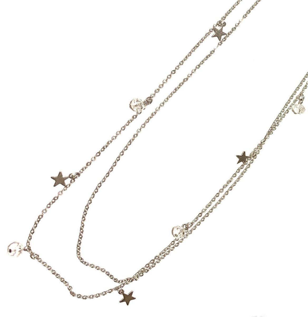 - クリスタル 流れ星シルバーチェーン2連ロングネックレス スター 銀色 きらきら