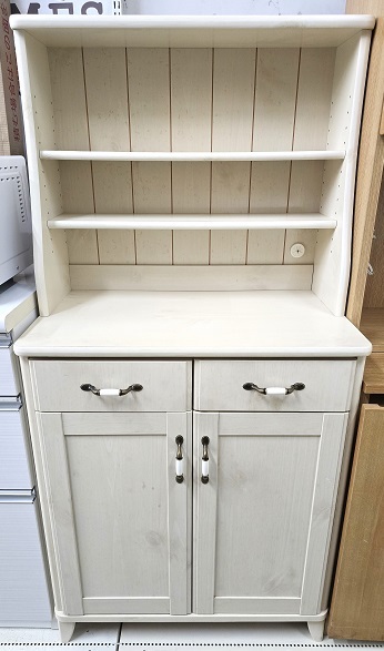 - 【中古品】 キッチンボード キャビネット オープン棚 フレンチカントリー調 食器棚 ○YR-18534○