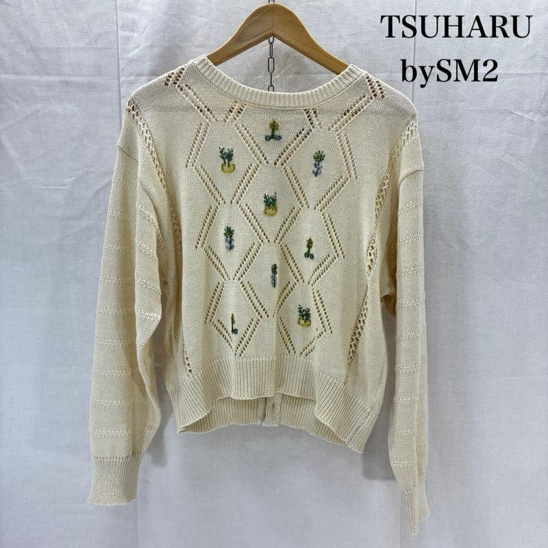 - サマンサモスモス TSUHARU ツハル 春の花ビーズ刺繍ニット サマーニット カーディガン オフホワイト tyt-1609690 FREE