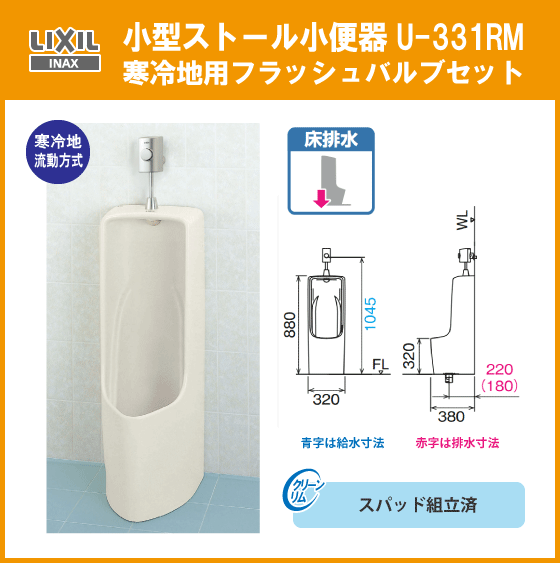 - 小型ストール小便器セット 寒冷地流動方式 U-331RM LIXIL INAX リクシル イナックス★