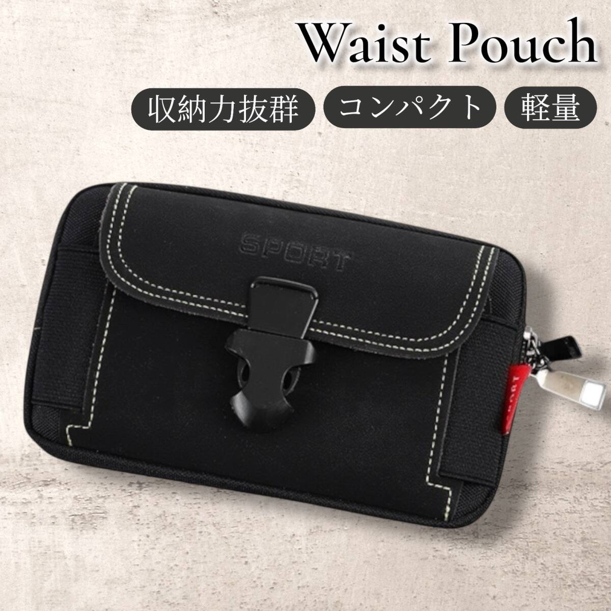 - ウエストポーチ ベルトポーチ ミニポーチ 黒 ブラック 18×5×10cm スマホ モバイルバッテリー 収納可 アウトドア ランニング 軽量 多機能