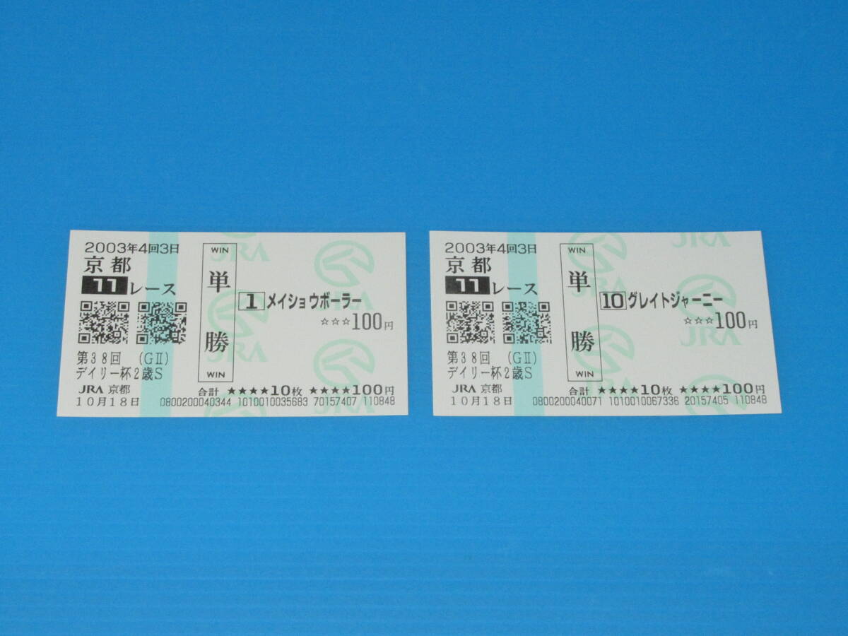 - 匿名送料無料 懐かしの単勝馬券 現地的中 ★メイショウボーラー他2着 第38回 デイリー杯2歳S GⅢ 2003.10.18 京都競馬場 福永祐一 即決!