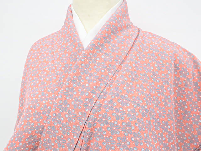 > 《京都一輝堂》リサイクル着物 小紋 花 正絹 身丈約164.5cm 裄丈63.5cm 25z08-4788