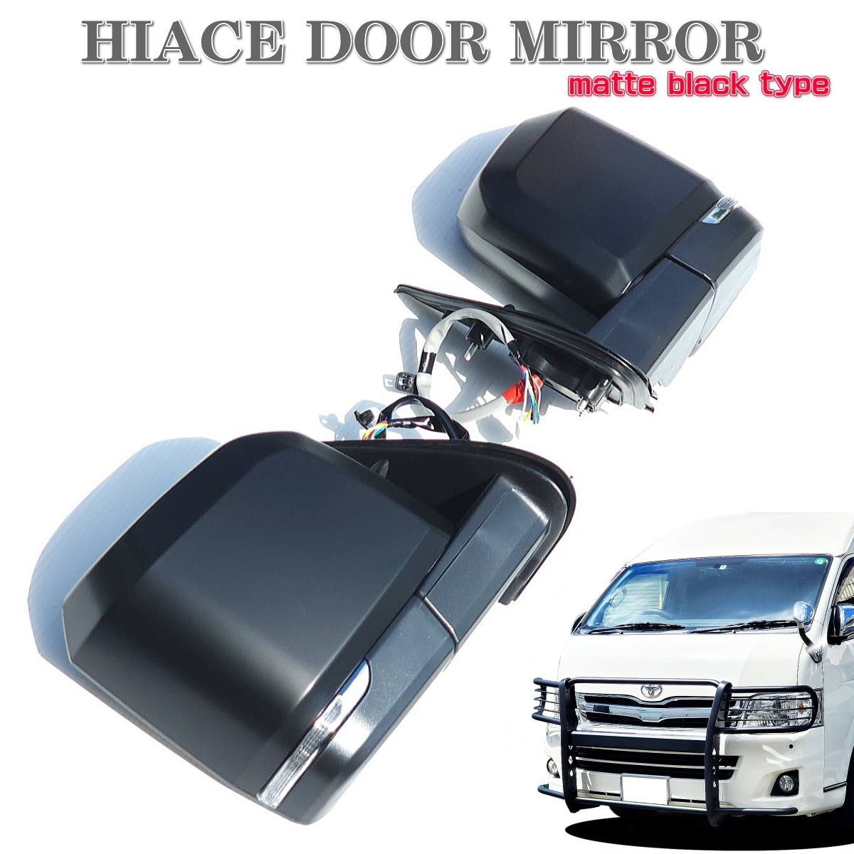 > ★即納 ハイエース 200系 6型タイプ ドアミラー マットブラック 電動格納 ウィンカー付き カプラーオン 1型 2型 3型 4型 5型 6型 7型 ★