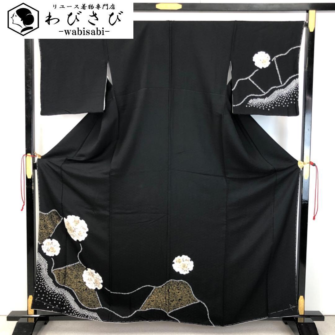 黒色のお色味に絞りの雪輪に辻が花模様の柄裄がデザインされた素敵なお品でございます。