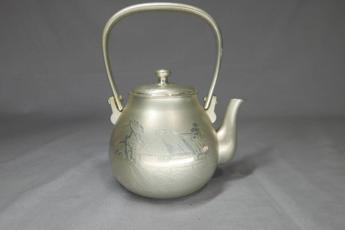 - 錫製 在印 瓶 水注 急須 風景図 煎茶道具