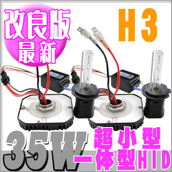 > 最新版!一体型ミニHIDキット 35W H3 8000K 超小型 省スペース ヘッドライト/フォグランプに 左右セット 12V用