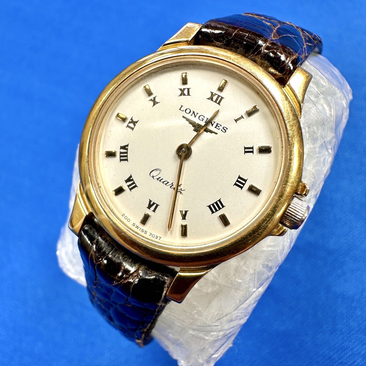 - 【稼働美品】LONGINES ロンジン レディース腕時計 200-7032 QZ アイボリー ローマン レザーバンド