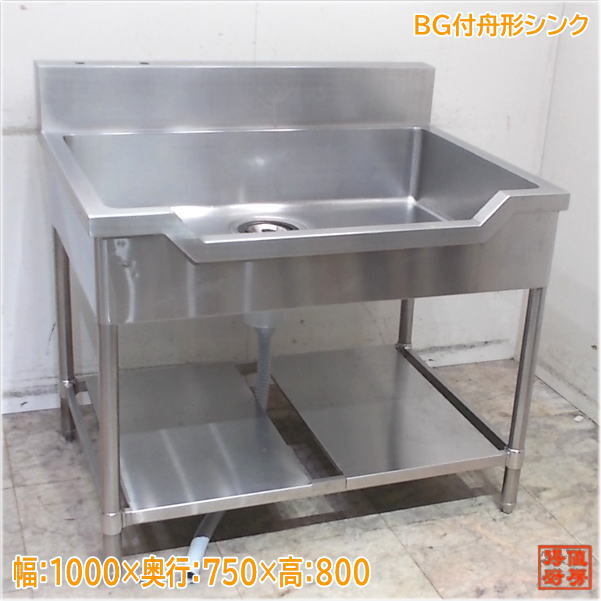 - ステンレス BG付舟形シンク 1000×750×800 業務用 中古厨房/25J2612Z