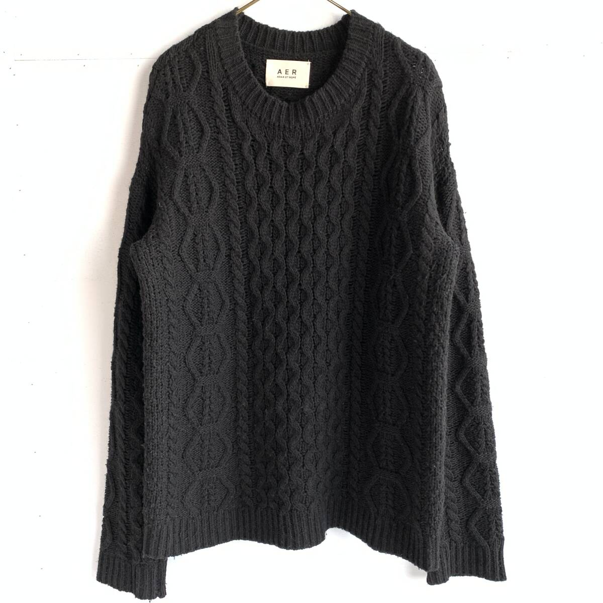 - ☆ADAM ET ROPE アダムエロペ ローゲージ フィッシャーマンニット ケーブル編み ニットセーター ブラック サイズL【送料一律/同梱可能】I