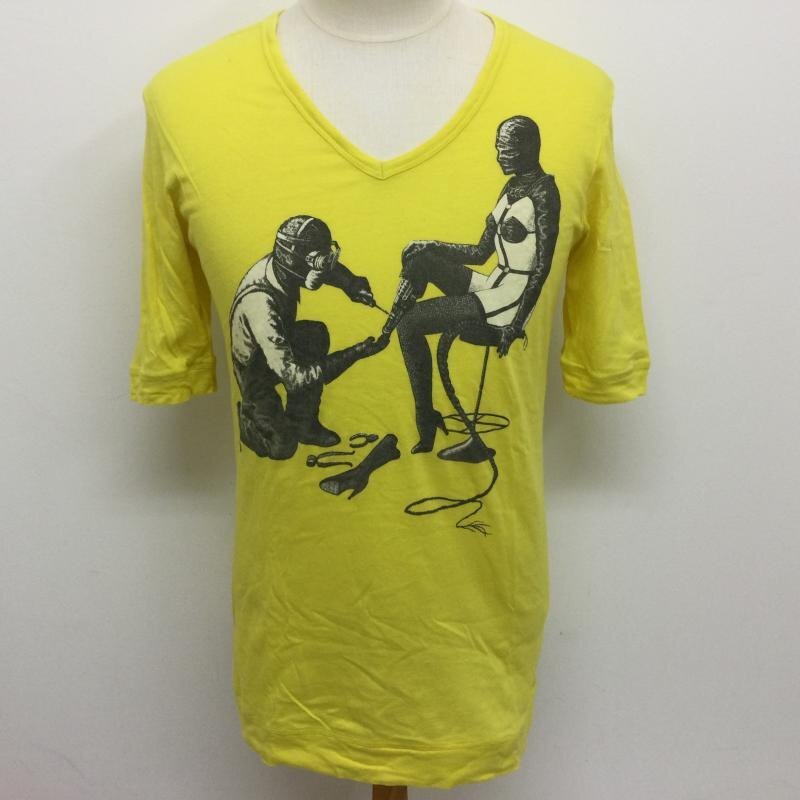 > ディーゼル ブラック ゴールド Vネック アートプリント 半袖Tシャツ ロングスリーブTEE S