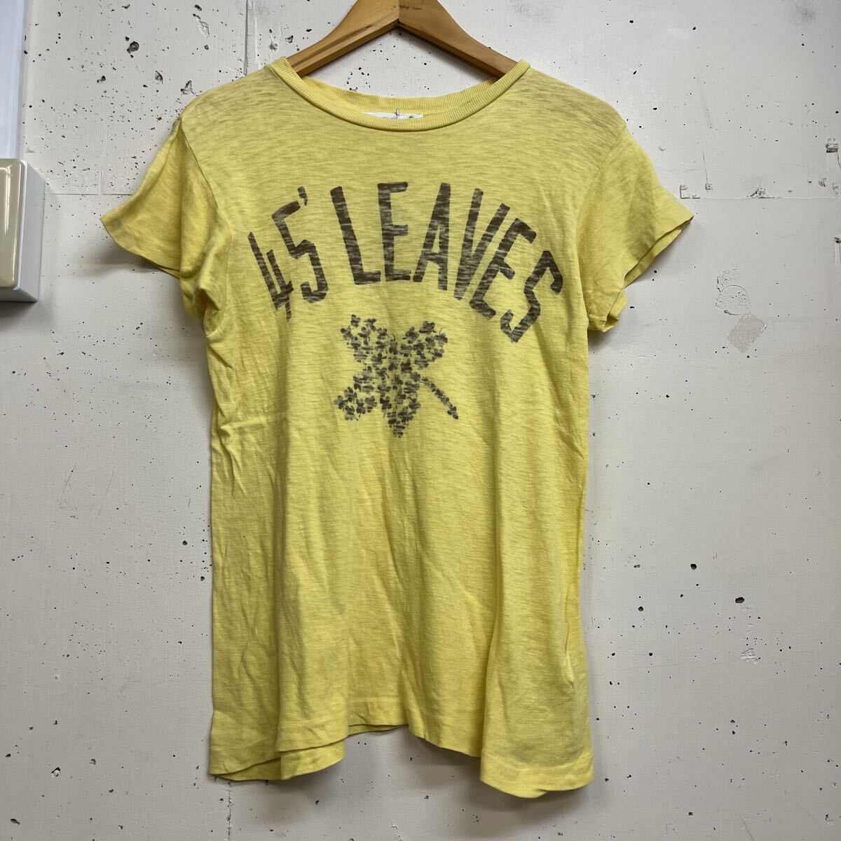 - 45rpm フォーティーファイブアール ロゴ 花柄 裏プリント サイズ2 半袖 カットソー Tee Tシャツ トップス イエロー コットン 日本製
