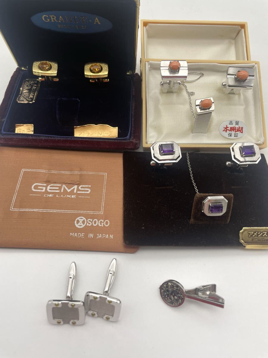 - シトリントパーズ さんご アメジスト カフス タイピン色々
