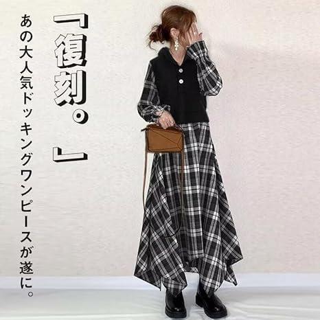 > L ワンピース ドッキングワンピース ロング ニットワンピース セーター 長袖 可愛い カジュアル ファッション きれいめ 和風
