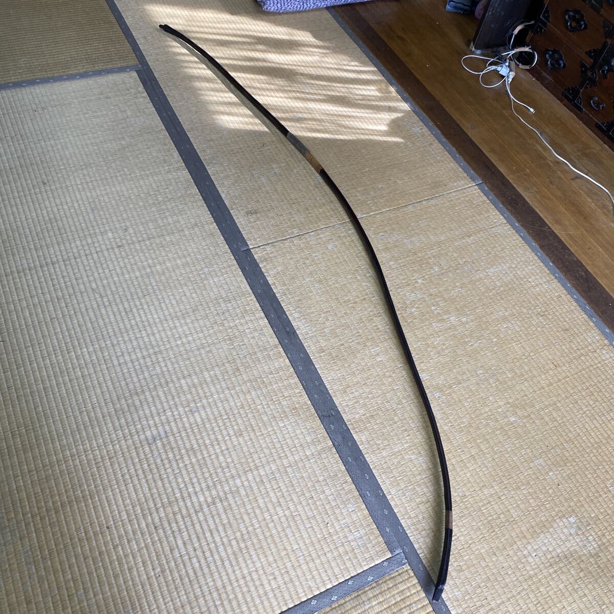 - 弓 古い弓具 時代物 武具 刀装具 古竹 一部竹網 黒漆仕上げ