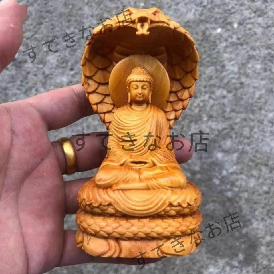 - 仏像 釈迦如来 座像 ムチリンダ龍王光背 蛇座 曹洞宗 臨済宗 天台宗 禅宗 本尊 お釈迦様 座釈迦総高12cm