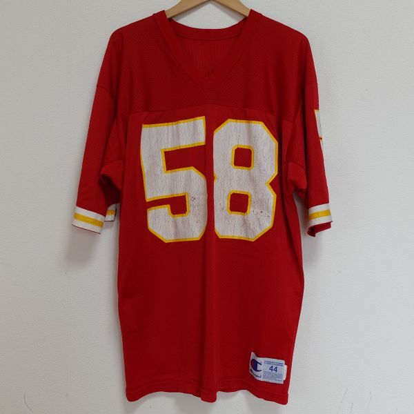 - Champion チャンピオン メッシュ フットボールTシャツ USA製 90s ビンテージ ナンバリング 両面プリント レッド