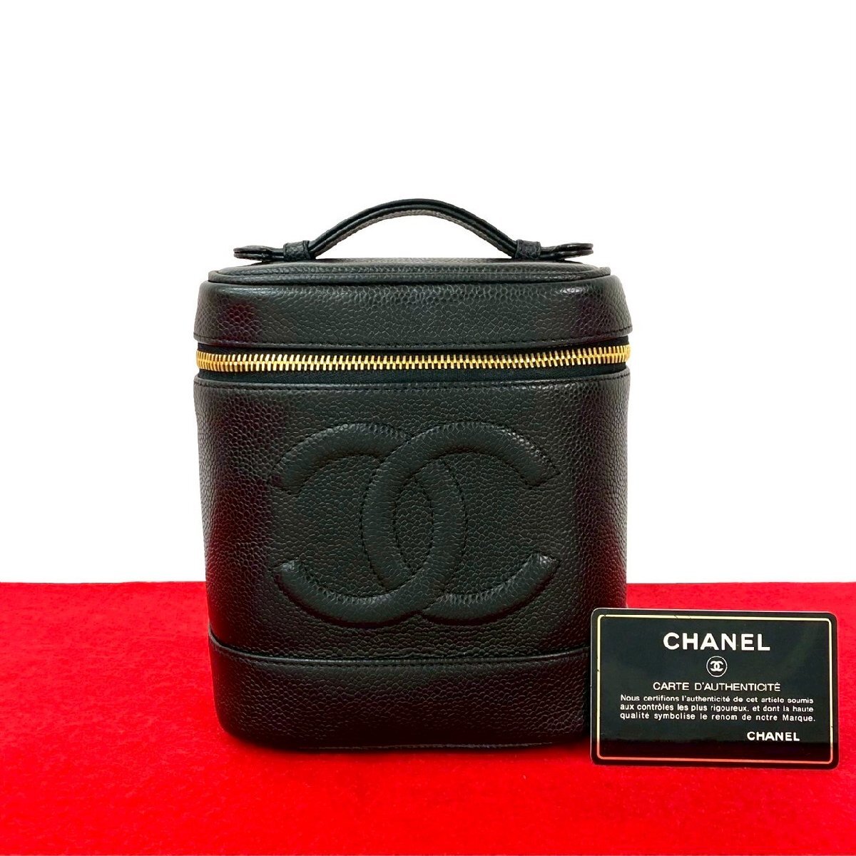 - 極 美品 カード シール有 7番台 CHANEL シャネル ココマーク キャビアスキン レザー 本革 ハンドバッグ バニティバッグ ブラック 06526