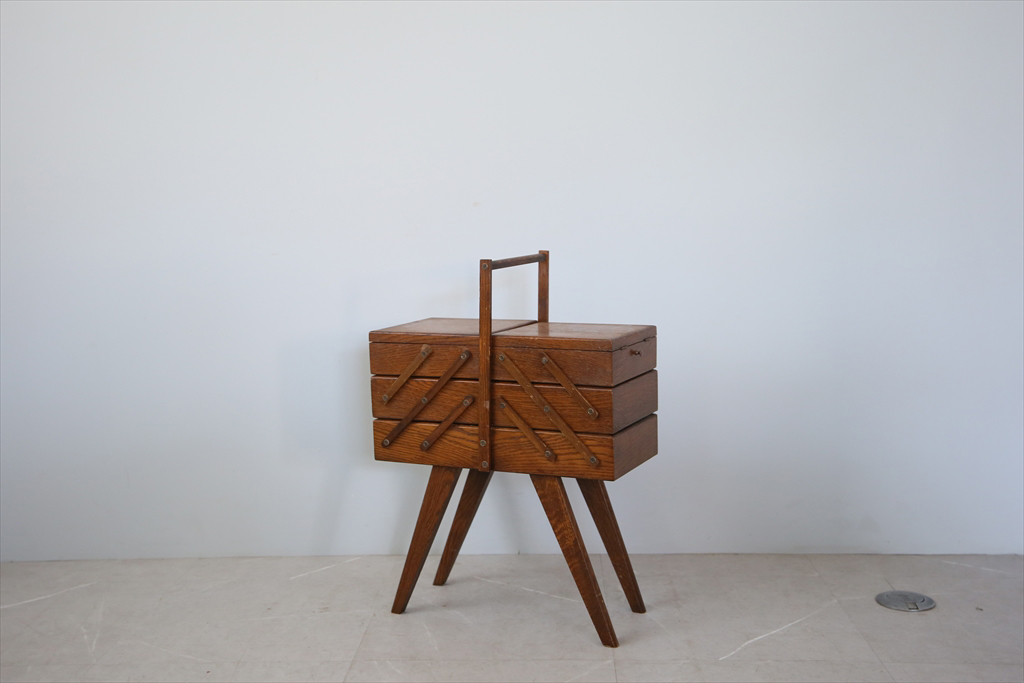 フランスの田舎で見つけた古木のソーイングボックス(裁縫箱)です。