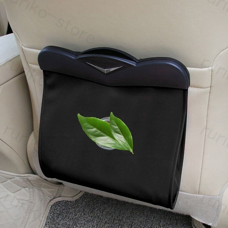 > ゴミ袋 フィアットFIAT車用シートバック収納ポケットレザー製1P 磁気付き LEDライト アクセサリー(ブラック)