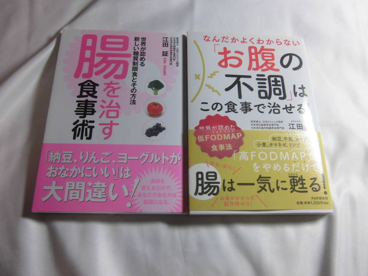 「なんだかよくわからないお腹の不調はこの食事で治せる! 世界が認めた低FODMAP(フォドマップ)食事法 」江田 証 (著)2017年初版2020年4刷定価1300円+税。と「腸を治す食事術」江田 証 (著)2020年初版2021年3刷定価1200円+税。の計2冊セット。