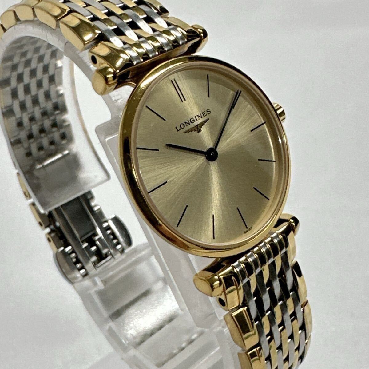 - 動作確認済 稼働 LONGINES ロンジン 腕時計 グランドクラシック L4.209.2 QZ クォーツ SS ゴールド文字盤【1255】
