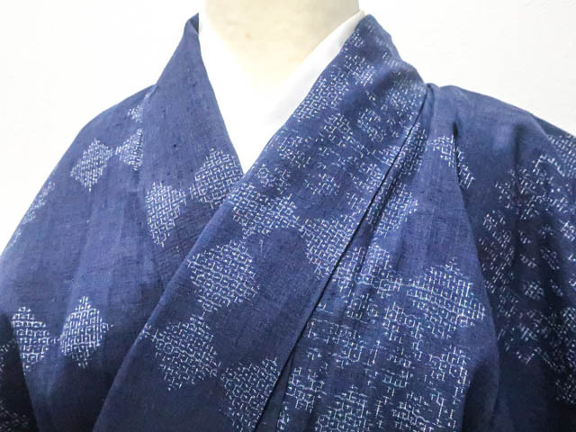 - 《京都一輝堂》リサイクル着物 結城紬 80亀甲 正絹 身丈約154.5cm 裄丈62.5cm 25z09-5023