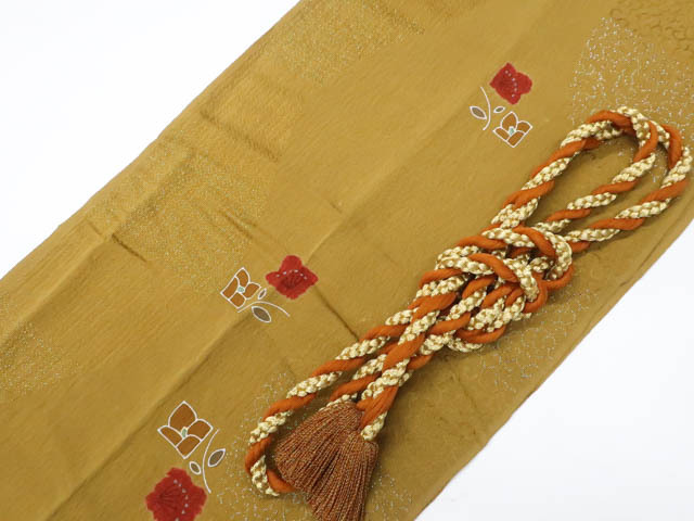 - 《京都一輝堂》リサイクル着物 和装小物 帯締め 帯揚げ セット 帯締 帯揚 丹後ちりめん 丸組 撚り房 金糸 25w08-10371