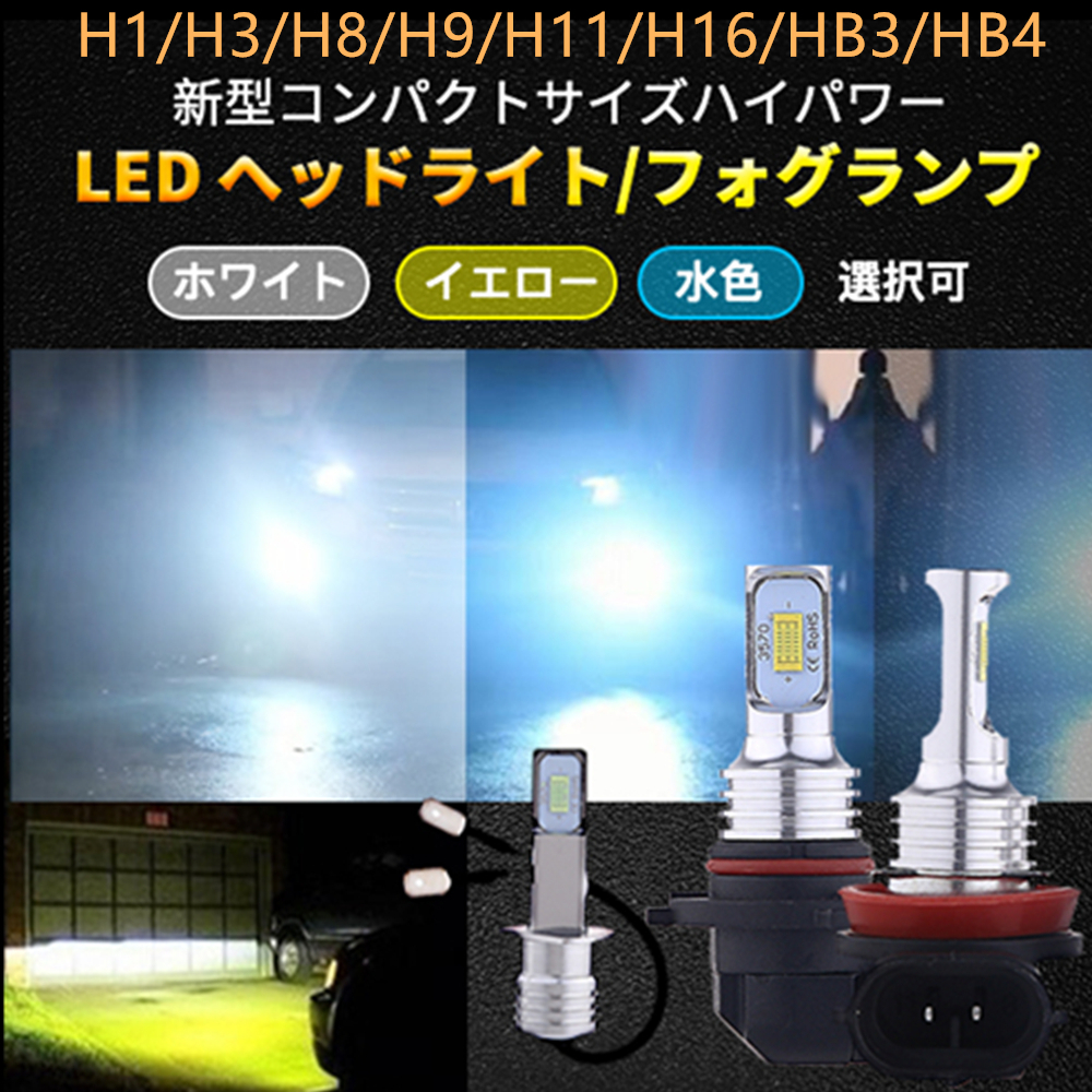 - 送料無料 コンパクト・ハイパワー LEDフォグランプ ホワイト/イエロー/水色 H1/H3/H8/H9/H11/HB3/HB4 2本/セット