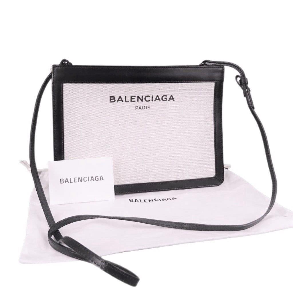 > 本物 良品■バレンシアガ■ネイビー ポシェット ベージュ キャンバス ブラック レザー 339937 斜めがけショルダーバッグ