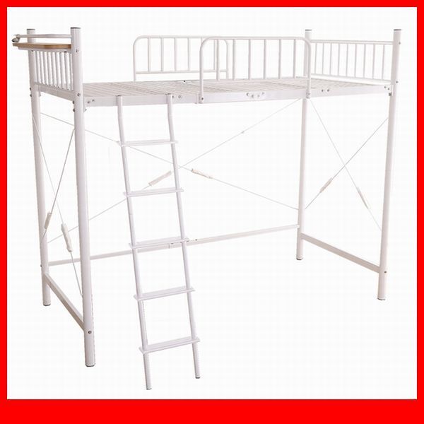 - ロフトベッド★宮付きロフトベッド シングル/通気性の良いメッシュ床板 宮棚 2口コンセント付き/ハイ ミドル 2段階/ホワイト/a3