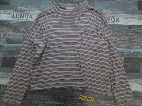 > CROCODILE クロコダイル メンズ ロゴ刺繍 ボーダー 胸ポケット付き モックネック カットソー M グレー紺赤
