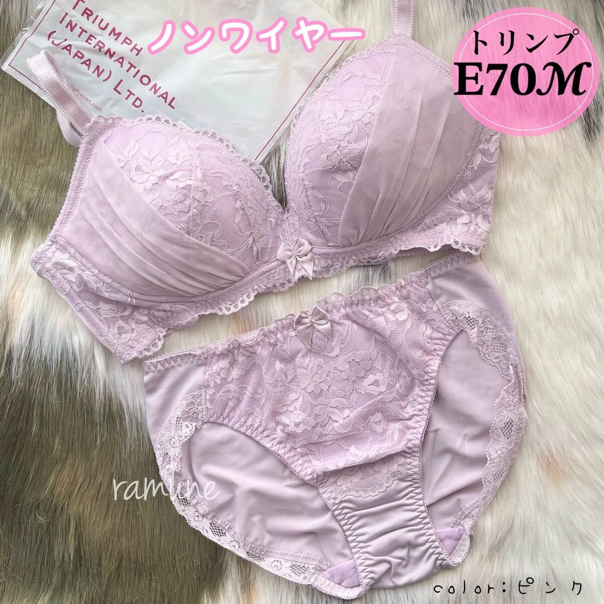 - 【トリンプ E70M ピンク】新品 Triumph ノンワイヤーブラジャーショーツ パッド付き 谷間を作る ワイヤーなし Eカップ かわいいブラ リボン