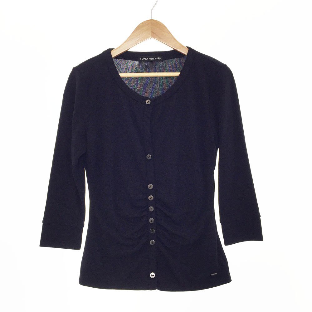 > ★美品 FOXEY NEW YORK フォクシーニューヨーク 7分袖 ジャージー生地カーディガン サイズ38 レディース ネイビー 22799-AVA159 1BA/93827