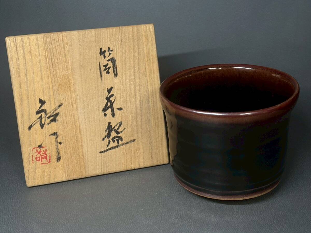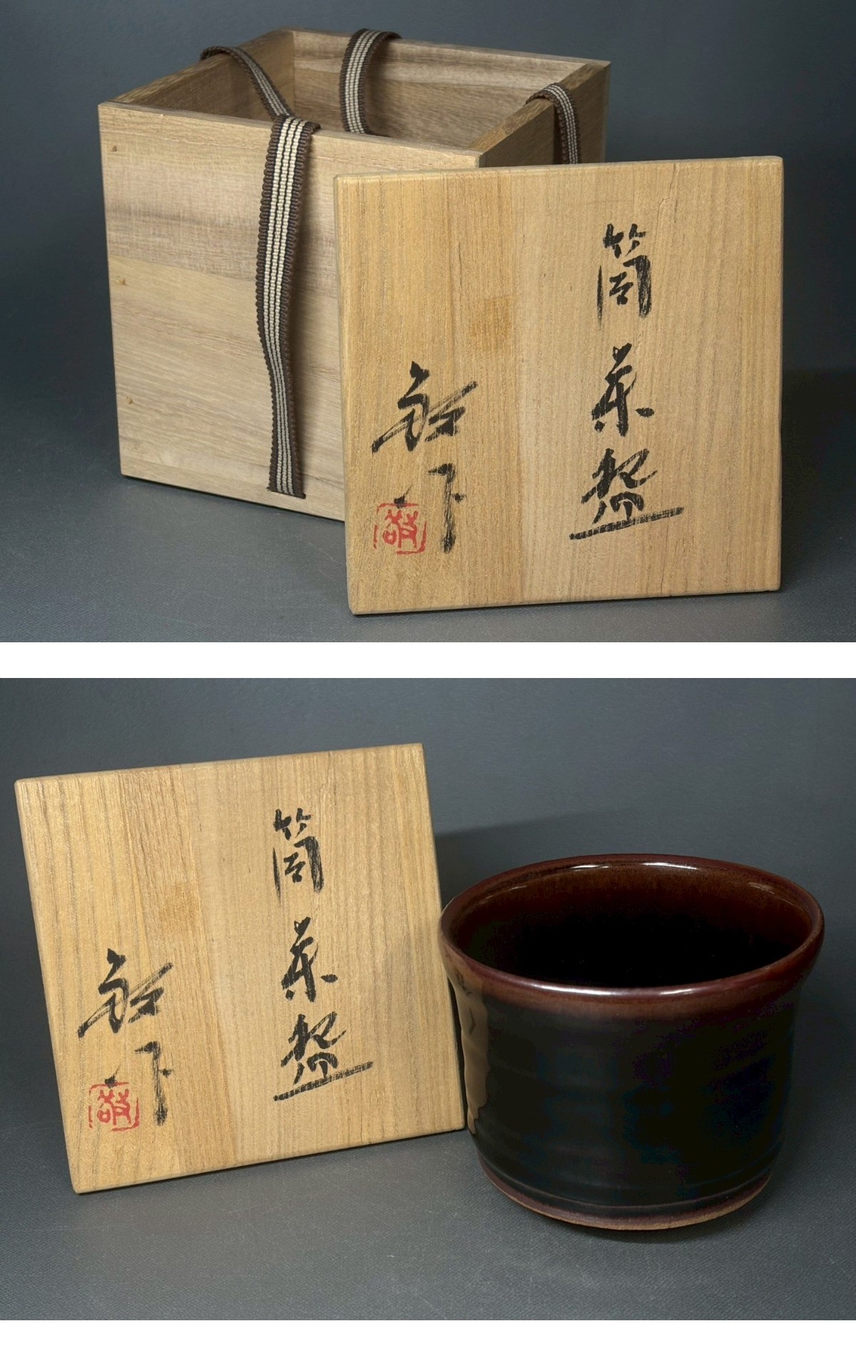- 筒茶碗 加藤敬也作 骨董 置物 飾物 日本伝統工芸品 芸術 古美術 時代物 在銘 共箱 旧蔵出 茶道具 茶器 食器 煎茶道具