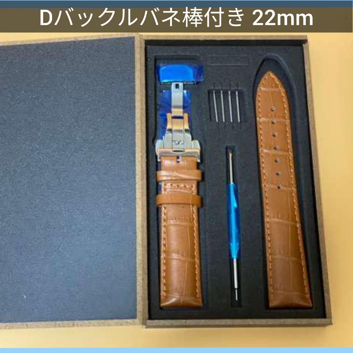 - 腕時計ベルト 22mm レザーベルト Dバックル 交換用ベルト バネ棒 外箱 革ベルト キャメル 腕時計バンド
