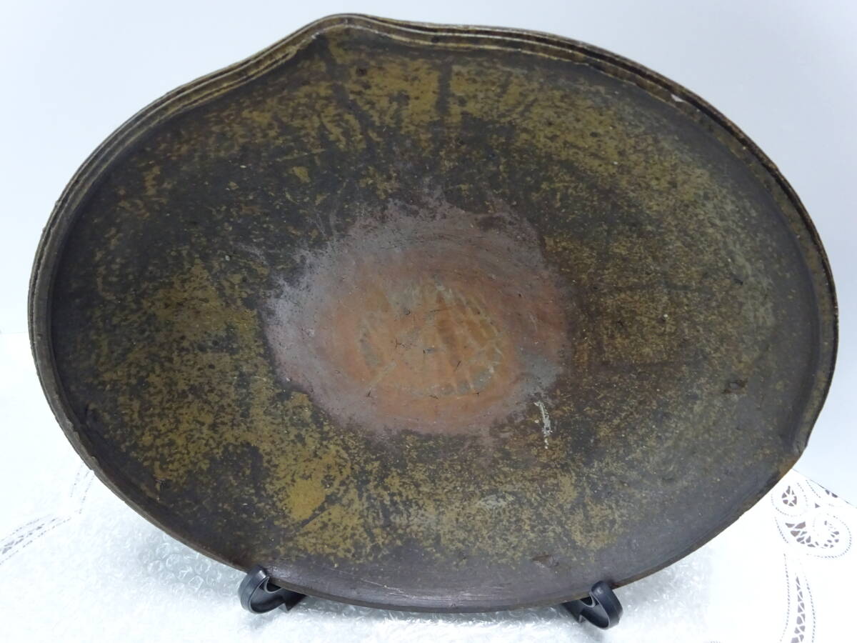 - 備前焼 人気実力作家 岡本徹正 日展会友 ★備前牡丹餅大皿 和食器、盛皿、懐石料理 茶道具