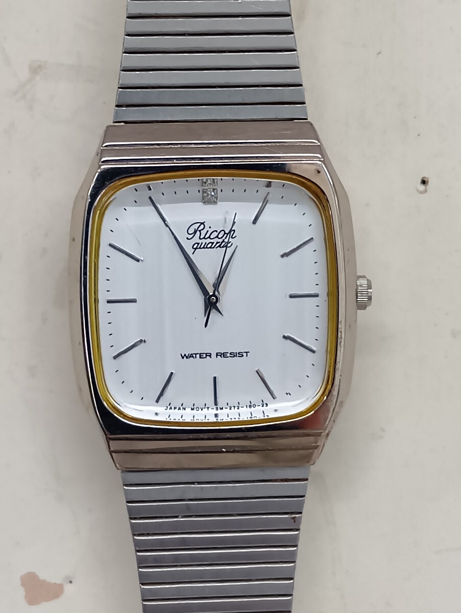 - 腕時計 リコー クォーツ メンズ 稼働中 腕周りフリーサイズ