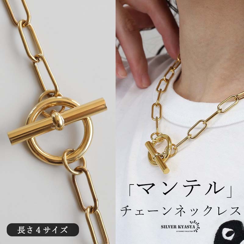 - (40cm) ステンレス マンテルネックレス 長小豆 コマ長 チェーンネックレス 18KGP ゴールド レディース 金アレ対応