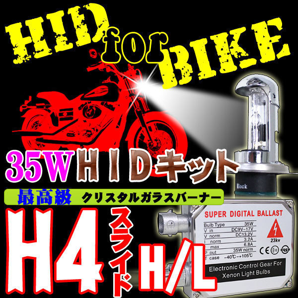 - バイク用 HIDキット35W H4スライド式 Hi/Lo 30000K ヘッドライト 6V-12V
