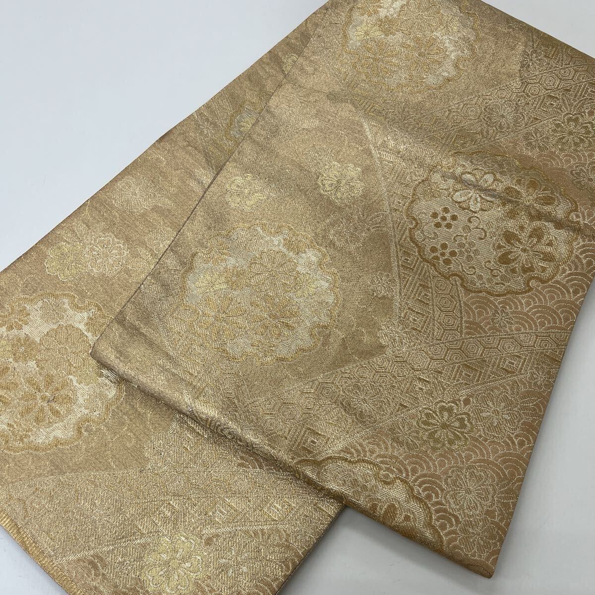- 袋帯 本金糸 雪輪に花 花唐草 正絹 W-4566