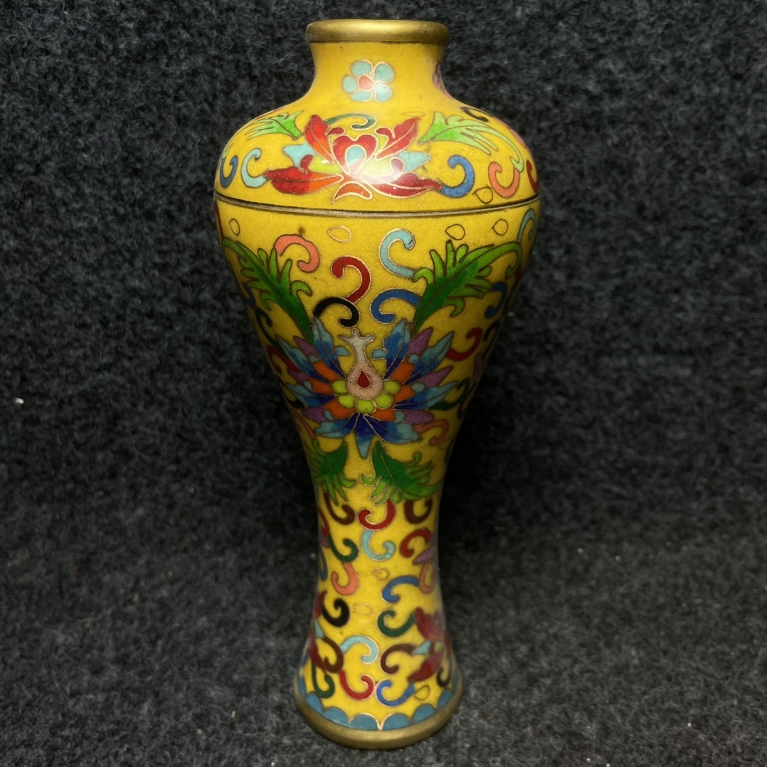 - 【超珍館蔵】 銅製細作 景泰藍 琺瑯彩 花瓶 擺件 箱付 置物 賞物 古賞物 古董品 古美術品 時代物 旧家蔵出 稀少珍蔵品