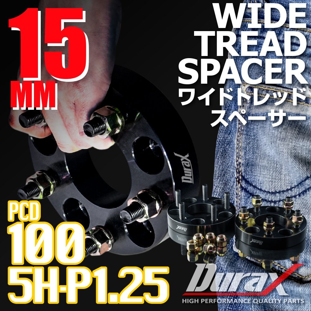 > DURAX ワイドトレッドスペーサー 15mm PCD100 5H P1.25 ステッカー付 ブラック 2枚 ホイール スペーサー ワイトレ 日産 スズキ スバル
