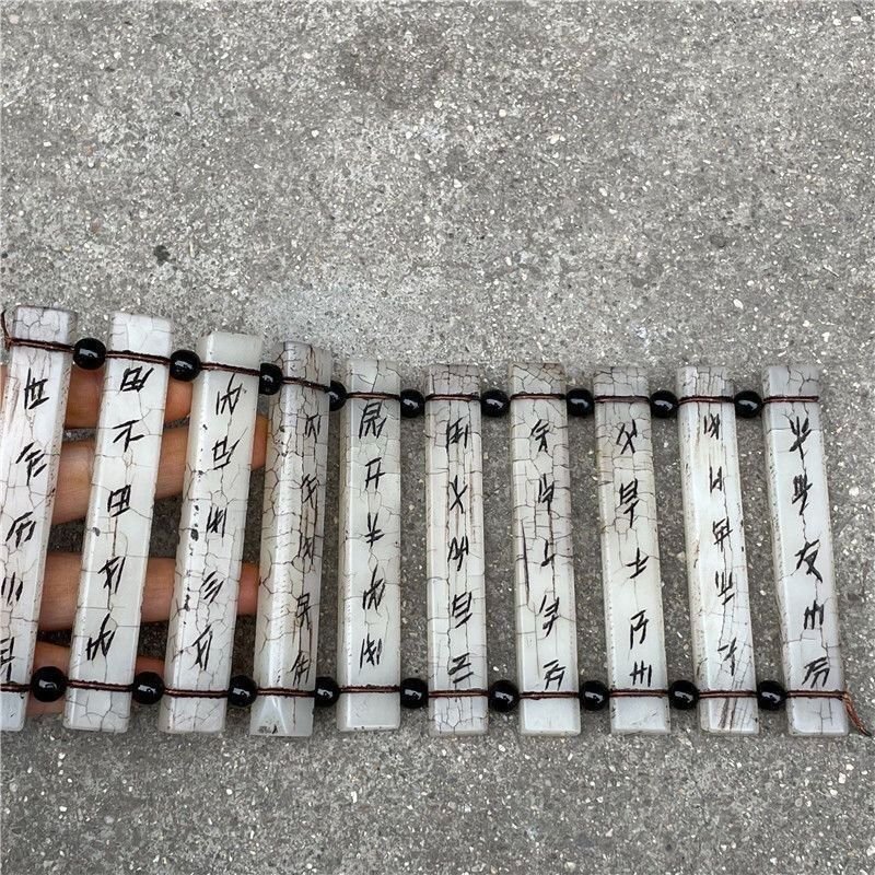 - 玉簡 玉石製書簡 甲骨文字 彫刻甲骨文字 工芸品 天然石 高古玉 中国美術品 撮影道具 鑑賞 置物 zh1029