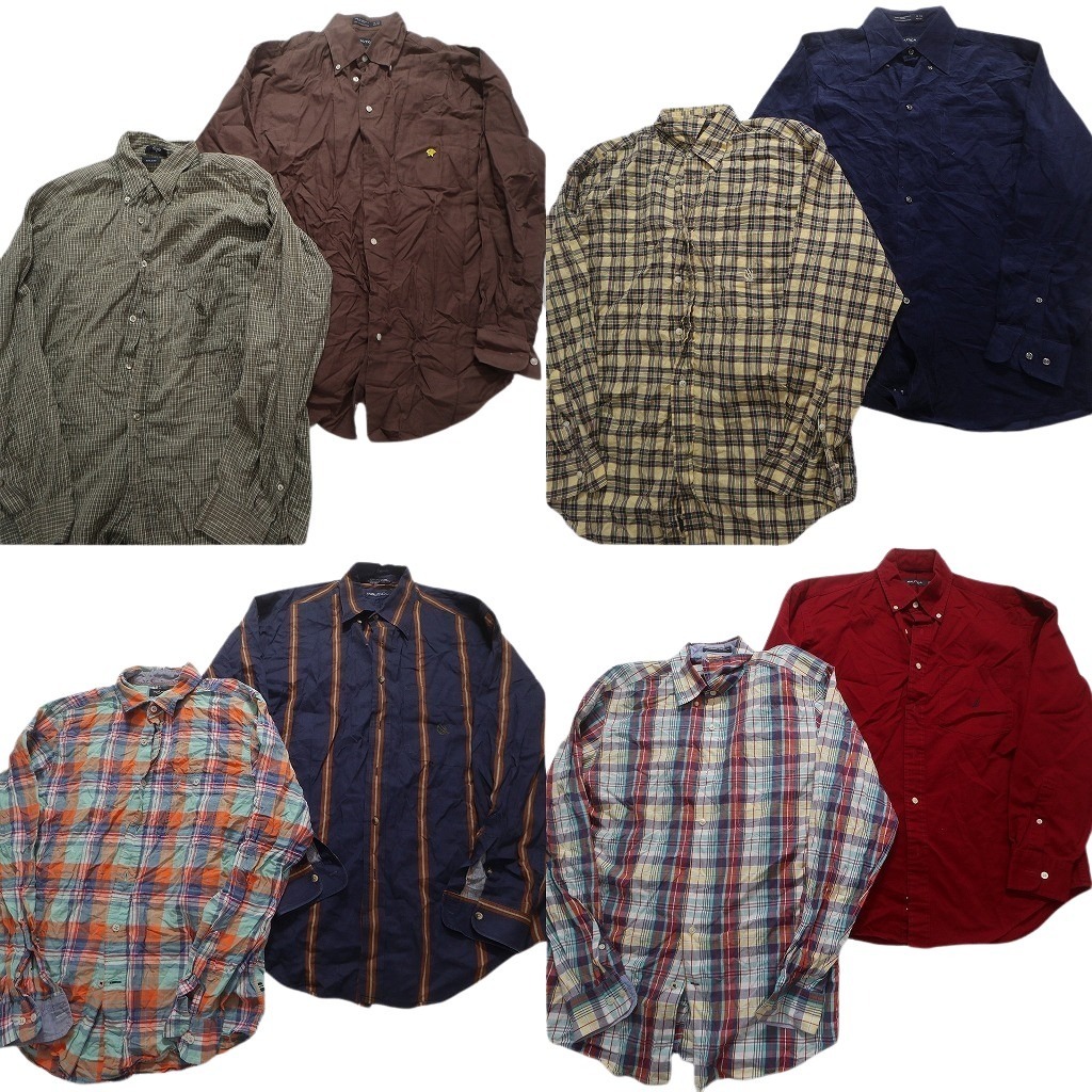 > 古着卸 まとめ売り ノーティカ NAUTICA 長袖シャツ 8枚セット (メンズ M ) チェック ストライプ コーデュロイ NC1787 1円スタート